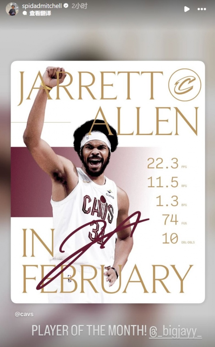 队友米切尔转发评论道:“月最佳球员。”